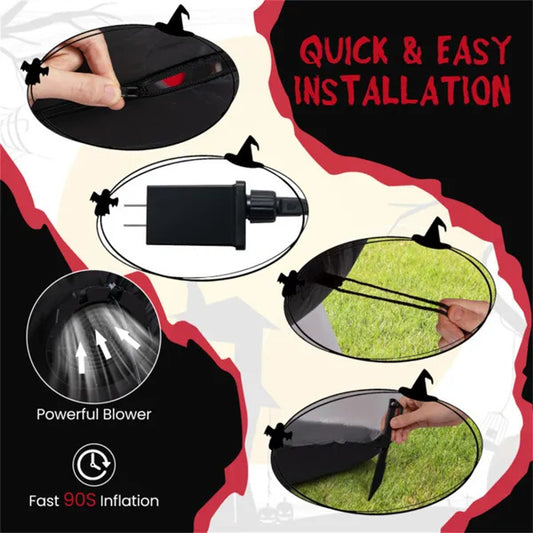 10ft Wide 5ft Tall Giant Halloween Inflatable Spider - LED Head Light 2 Red Eye Tunnel Lights