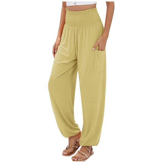 Elastic-waist High Waist Wide-leg Casual Trousers