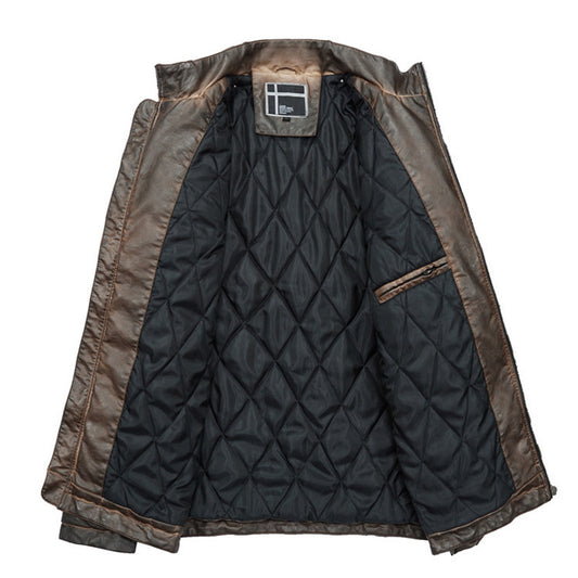 Fashion Thick Solid Color Retro Men's Leather Jacket