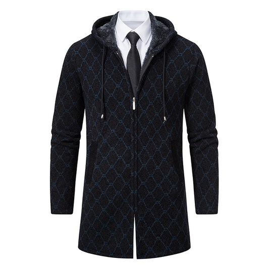 Jacket Men's Mid-length Sweater Casual Hooded Coat