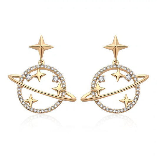 Korean Fashion Universe Planet Star Drop Earrings for Women Aesthetic Zircon Dangle Earrings Trendy Femme Saturn Jewelry