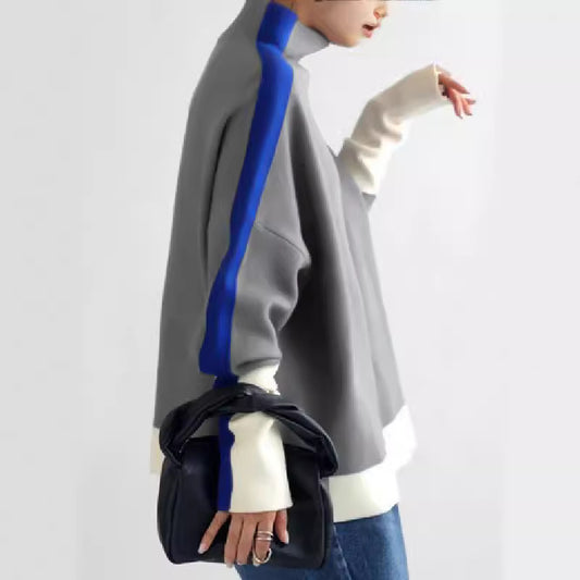 Long Sleeve Half Zipper Stitching Casual Fashion European And American Style Pullover Sweater