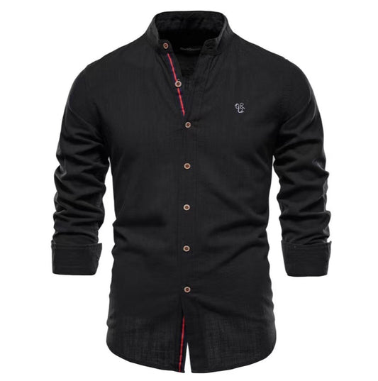 Long Sleeve Henley Shirt Men's Cotton And Linen Casual Fashion Solid Color Long Sleeve Henley Shirt