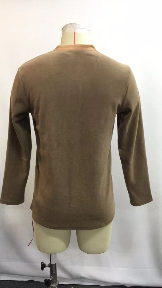 Men's Outdoor Fleece Comfortable Vintage Henry Neck Sweatshirt