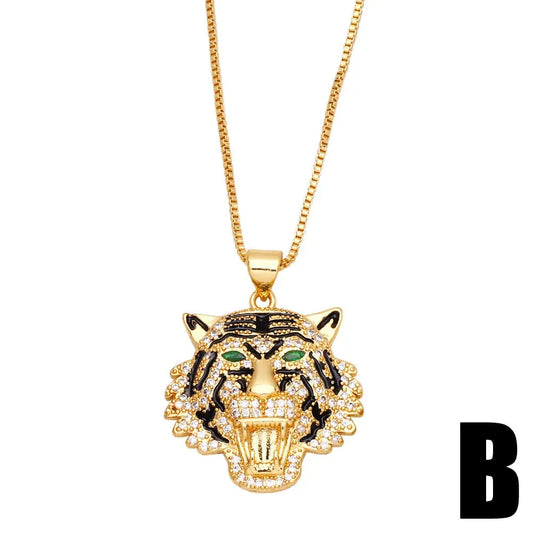 Pendant Necklace Three-dimensional Full Diamond Painting Oil Tiger Head Pendant Necklace