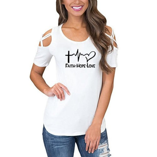 Round neck heart-shaped print ten-finger cross short-sleeved strapless women