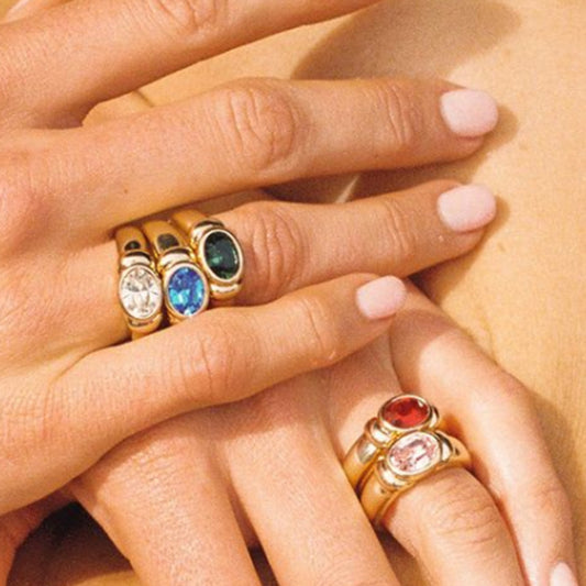 Titanium Steel Plated Gold Multicolor Zircon Ring