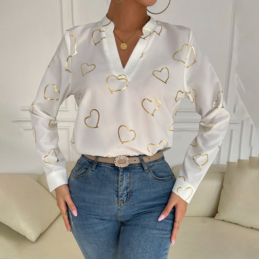 Women's Loose Fashion Printing V-neck Long Sleeve Shirt