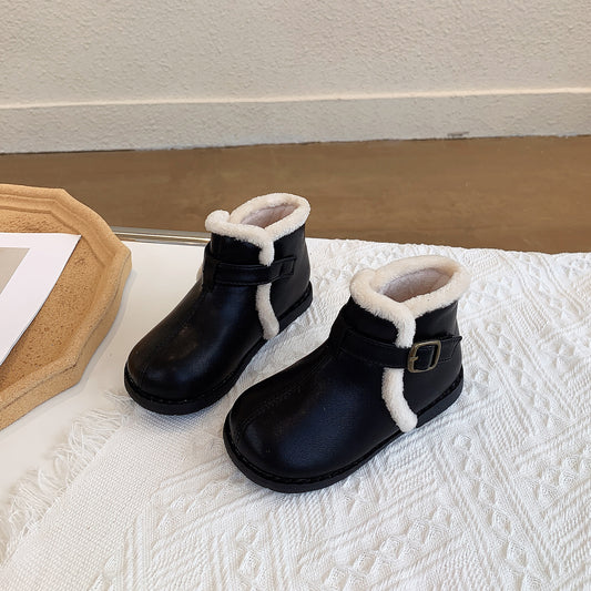 Snow Black British Boots Round Toe and Velvet Mid-Top Tide Shoes