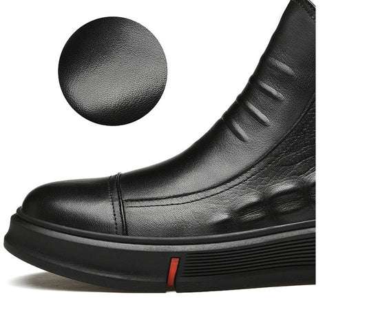 Winter Cowhide Casual Leather Shoes British Middle Cut Martin Boots
