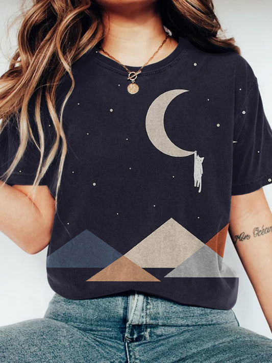 Short Sleeved Shirt Women's Printed Round Neck Pullover