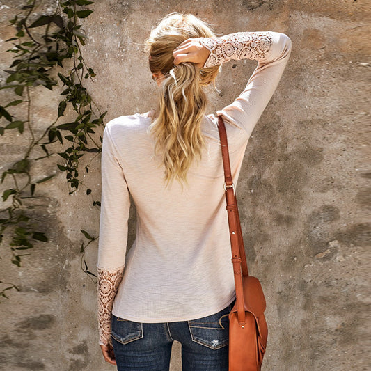 Niche V-neck Cross Pullover Long-sleeved T-shirt For Women