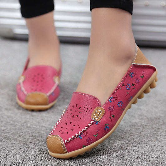 Leather printed women's shoes hole shoes