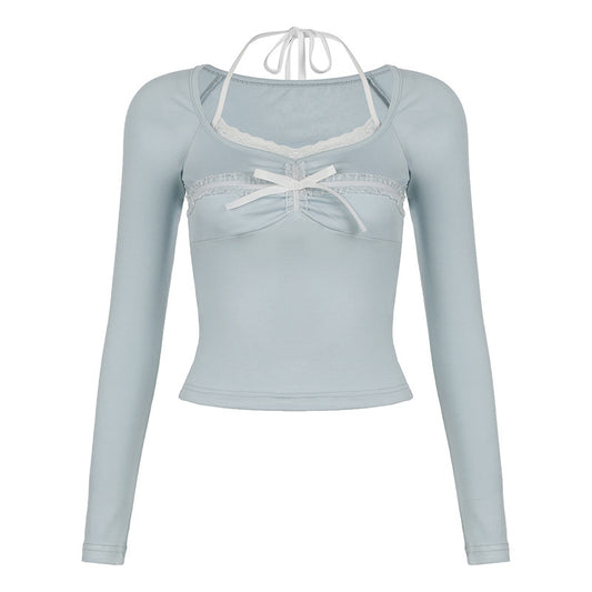 T-shirt Sweet Girl Halter Top Slim Fit Versatile Fake Two Pieces T-shirt