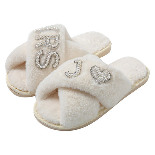 Christmas Plush Slippers Fashion Open-toed Home
