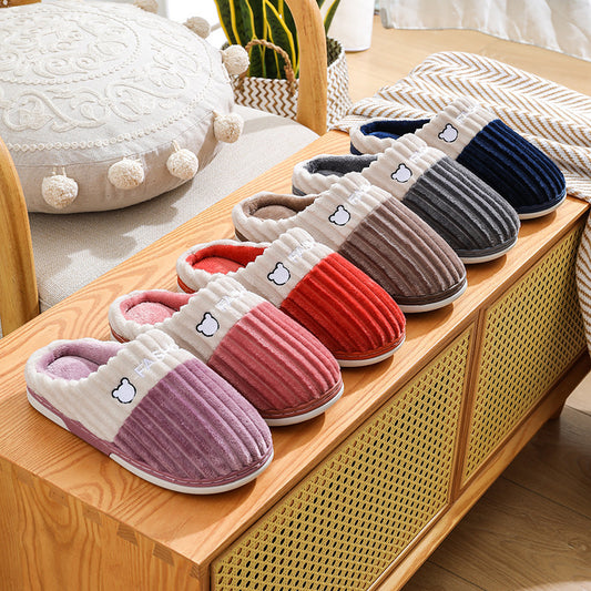 Winter Slippers Bear Embroidery Slippers Home Couple Winter Shoes