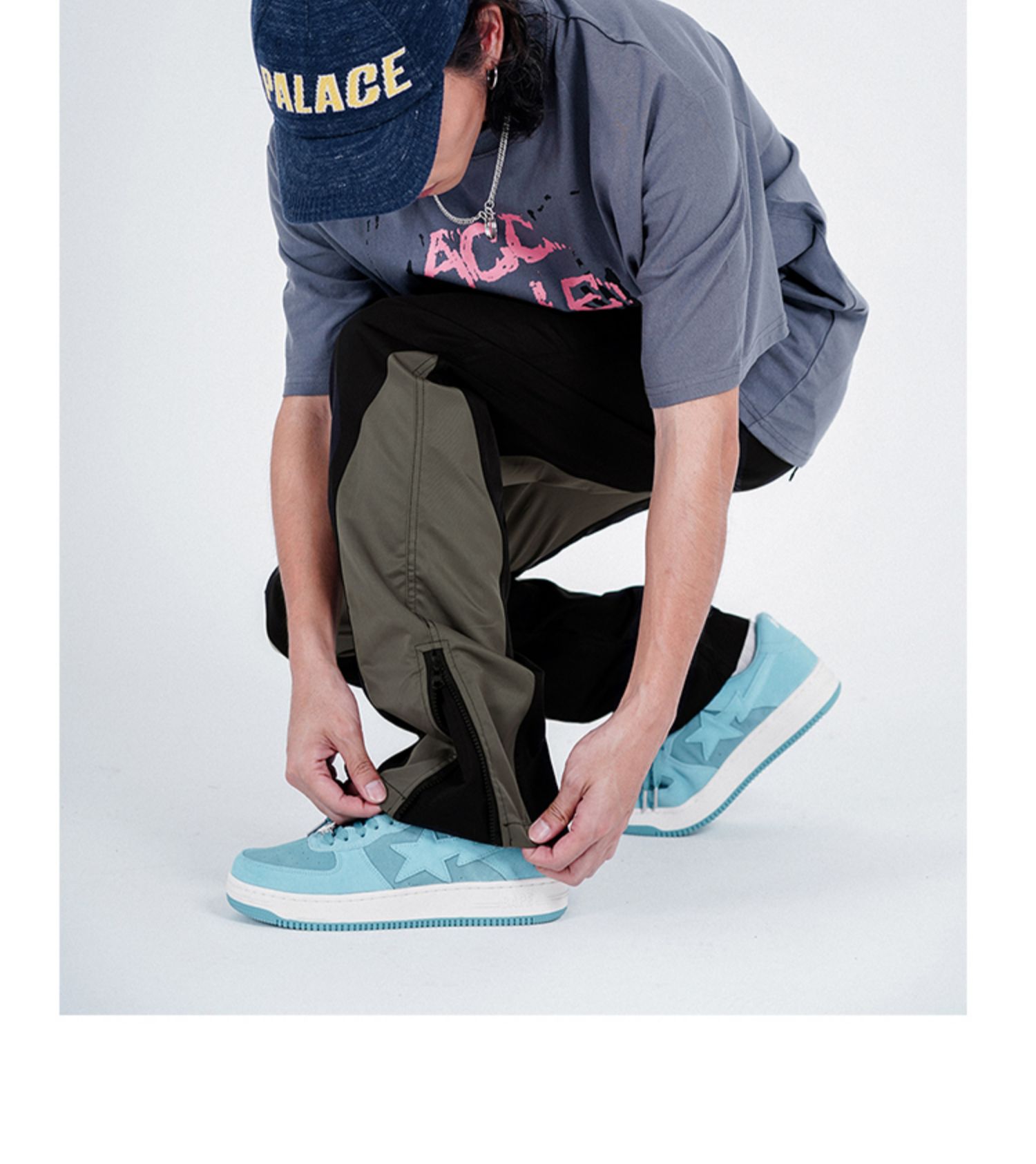 Pants American High Street Alphabet Embroidered Panel Contrast Track