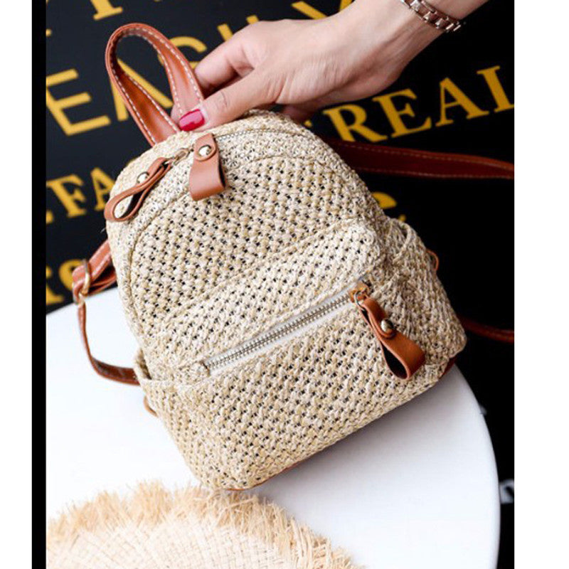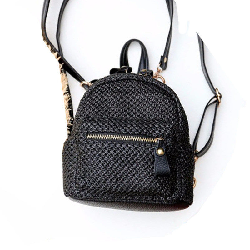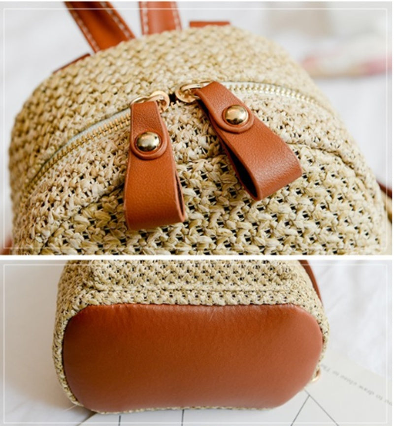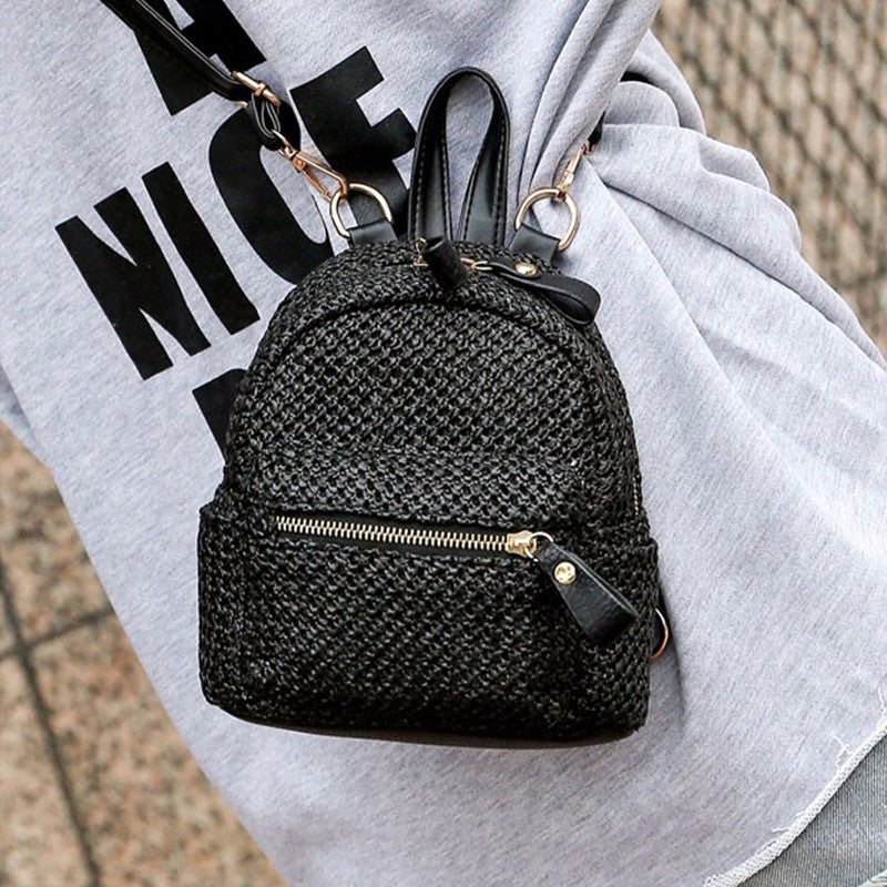 Backpack Straw Woven Backpack Small Hollow Solid Color