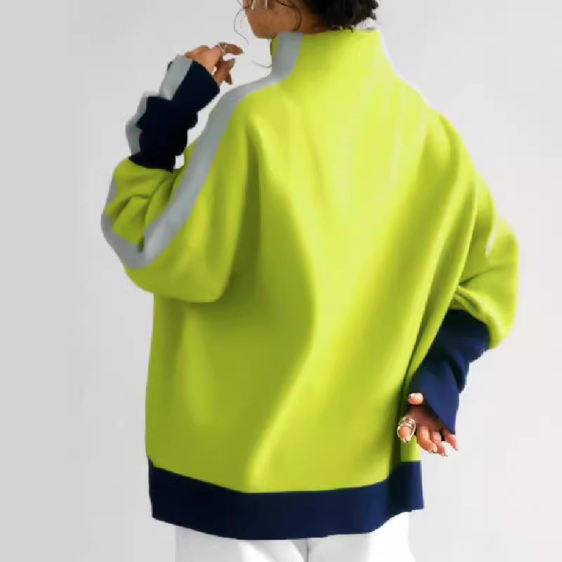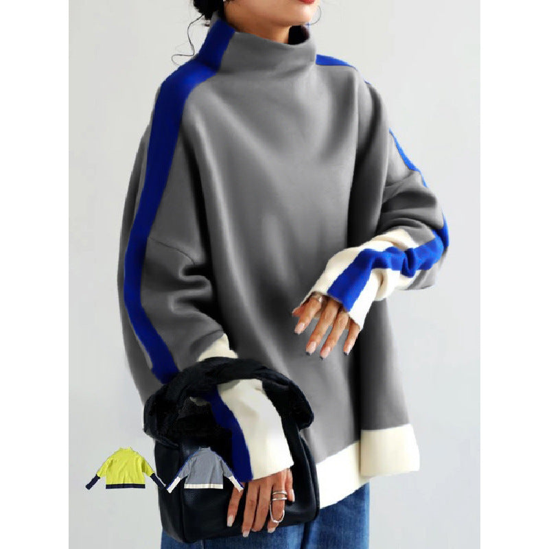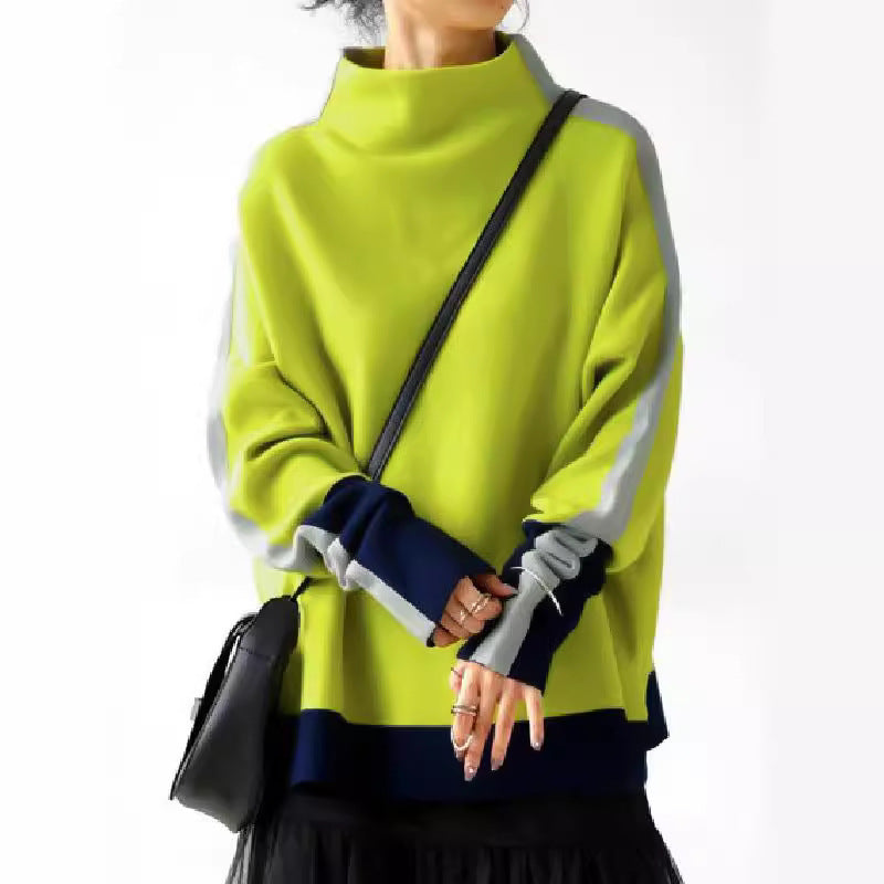 Long Sleeve Contrast Color Slit Turtleneck Hoodie Sweatshirt
