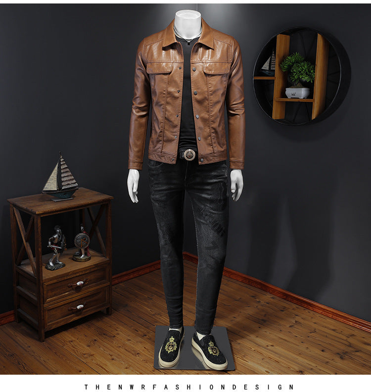 Leather Jacket Men's Long-sleeved Lapel Pu Handsome