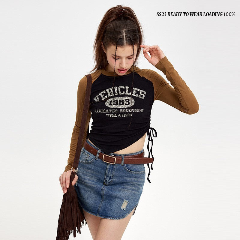 Retro Irregular Hem Short-sleeved T-shirt Top