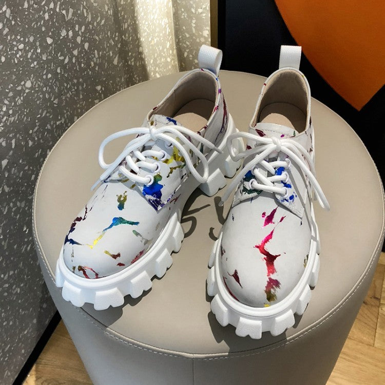 Round Toe Wedge Casual Shoes Camouflage Platform Round