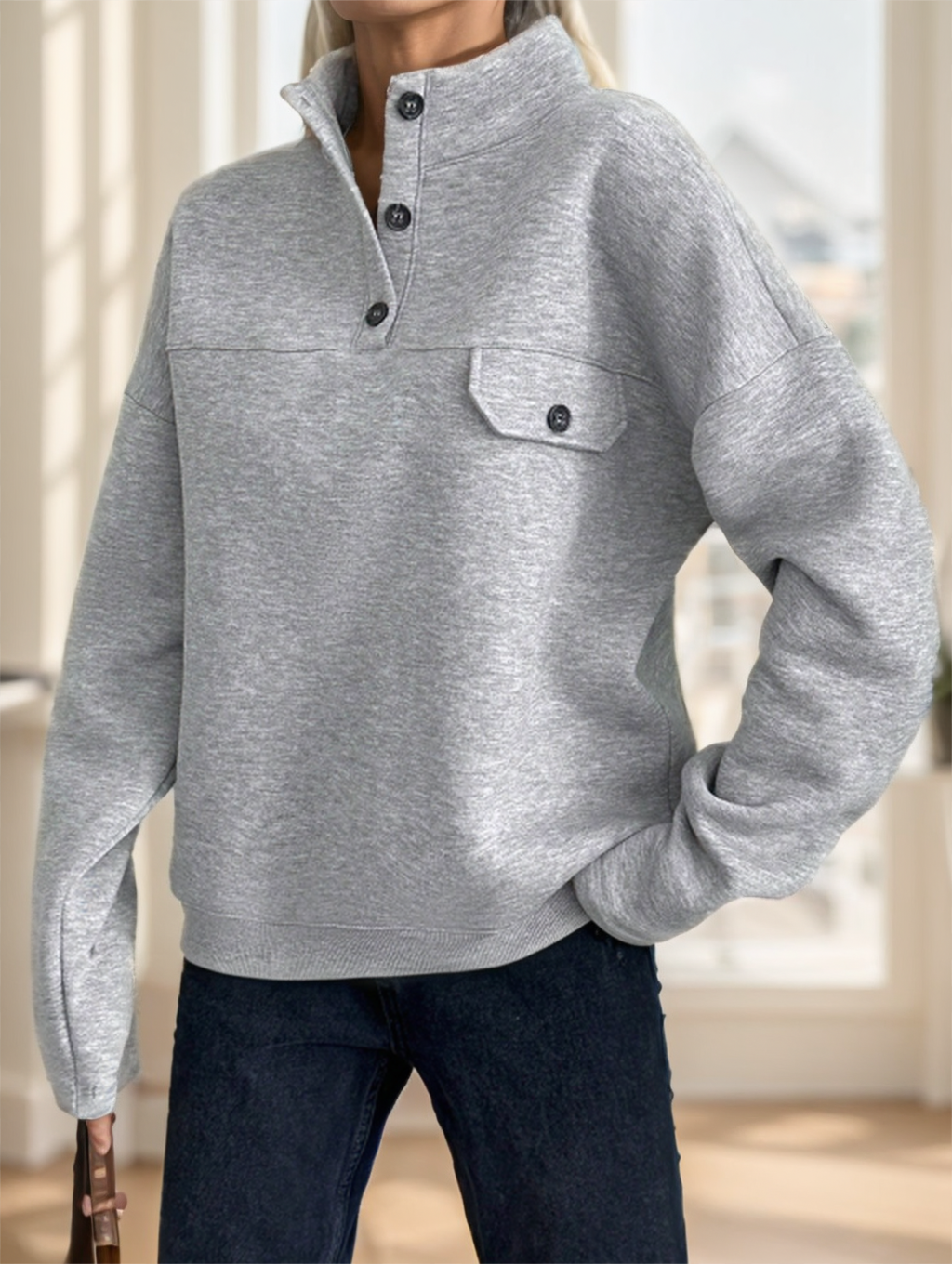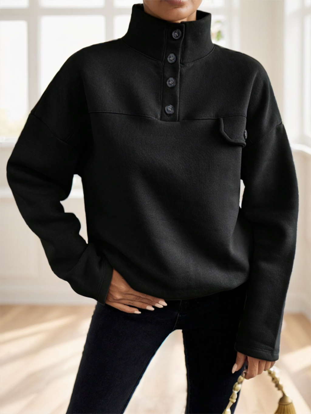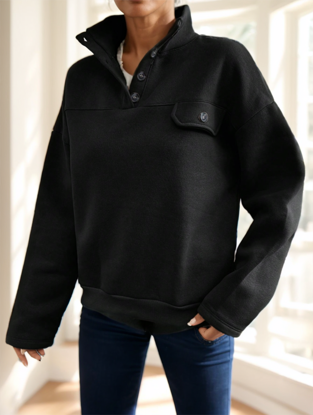 RueChic Half Button Flap Detail Drop Shoulder Sweatshirt