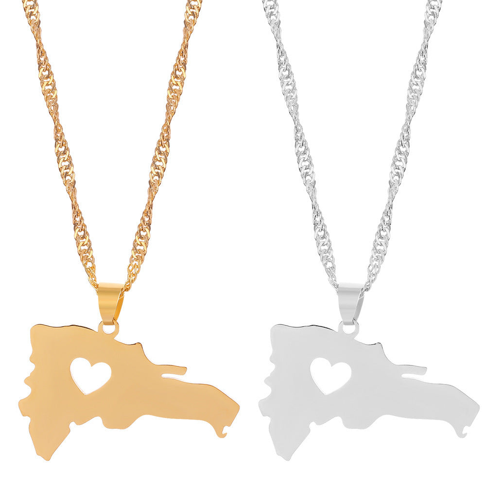 Stainless Steel World Multi-country Map Necklace