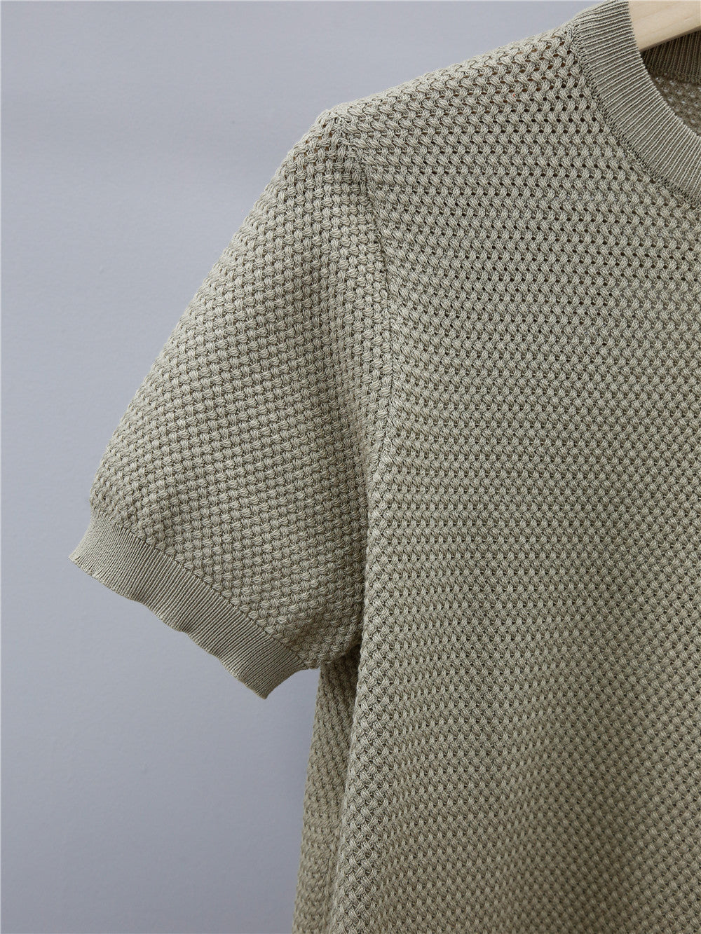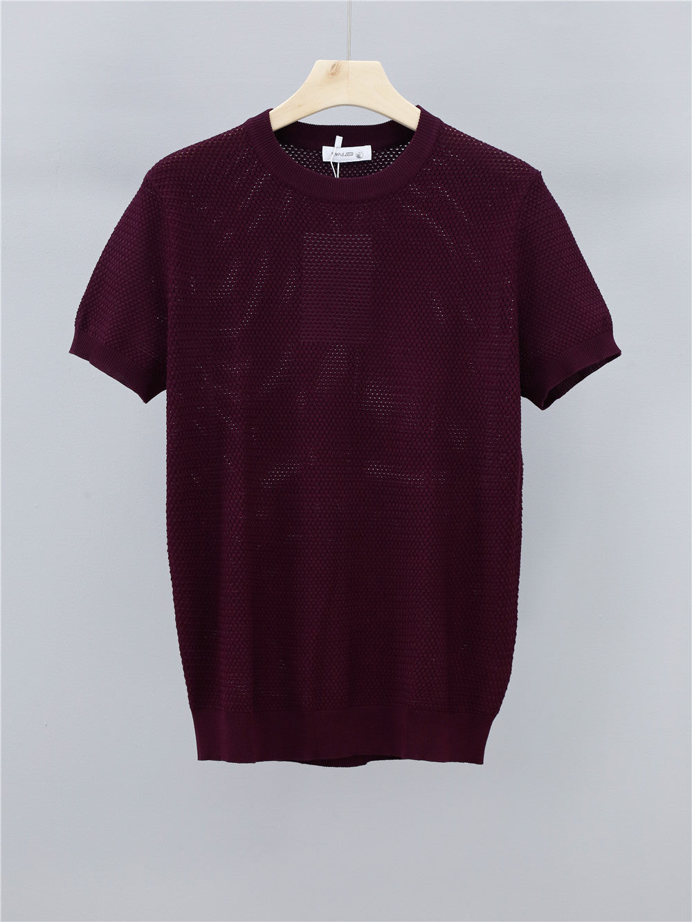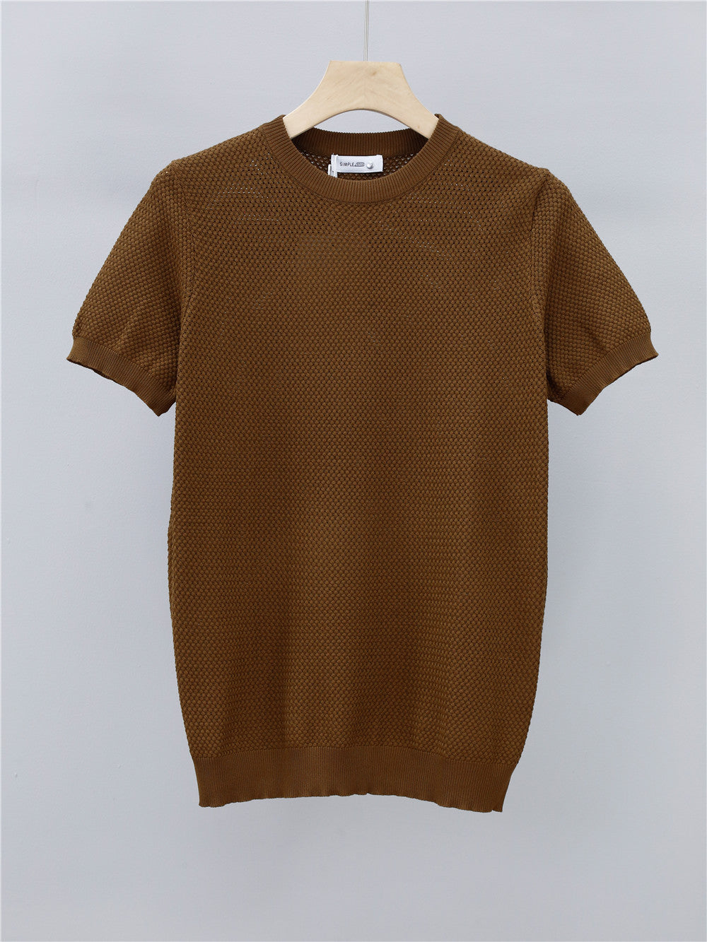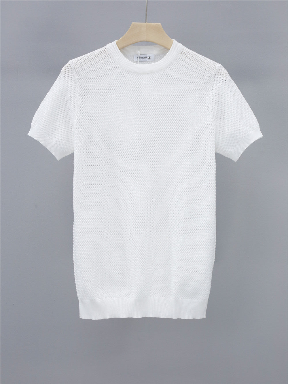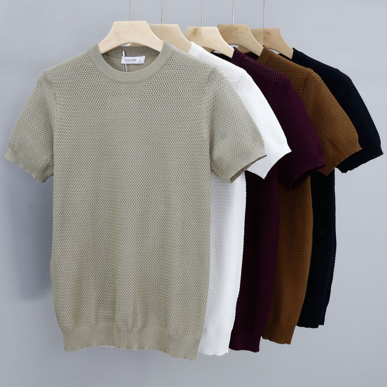 Summer Men's Ice Silk Knitted Round Neck T-shirt